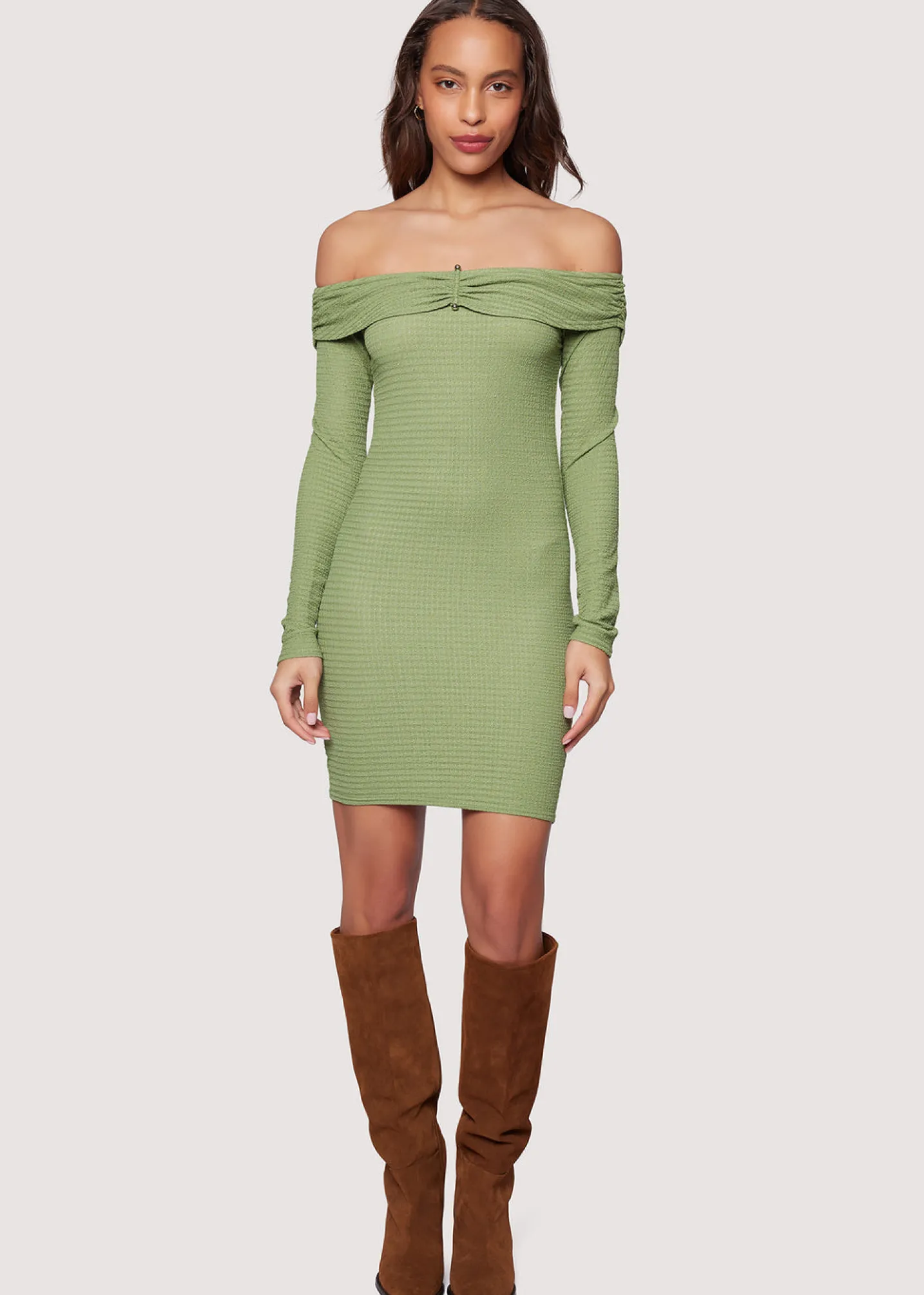 You can never have too many effortless wear staples in your closet, and the Agave Nectar Mini Dress is no exception. This figure hugging silhouette falls off the shoulder and displays a metal novelty rod in the center bust to create a stand-out detail. A soft shirring element is formed by the rod while also ensuring security. Pair with your favorite knee high boots for the ultimate pre-fall outfit!