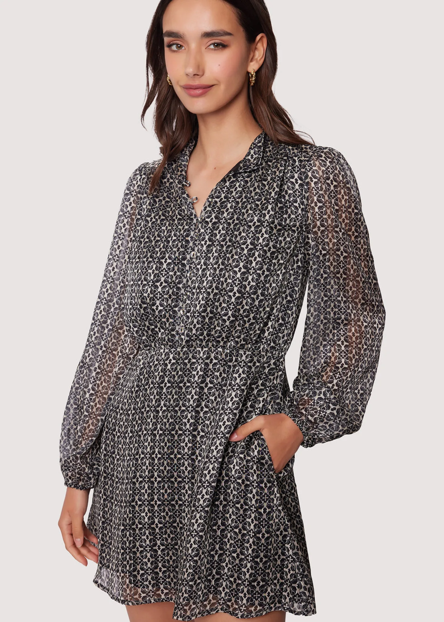 Introducing the Mira Mini Dress, the perfect chiffon dress with a touch of shine. Featuring long sleeves and side pockets, this mini is a stunning work-to-night must-have. With a luxe fabric dusted with lurex, you’ll be sure to feel confident and stylish.