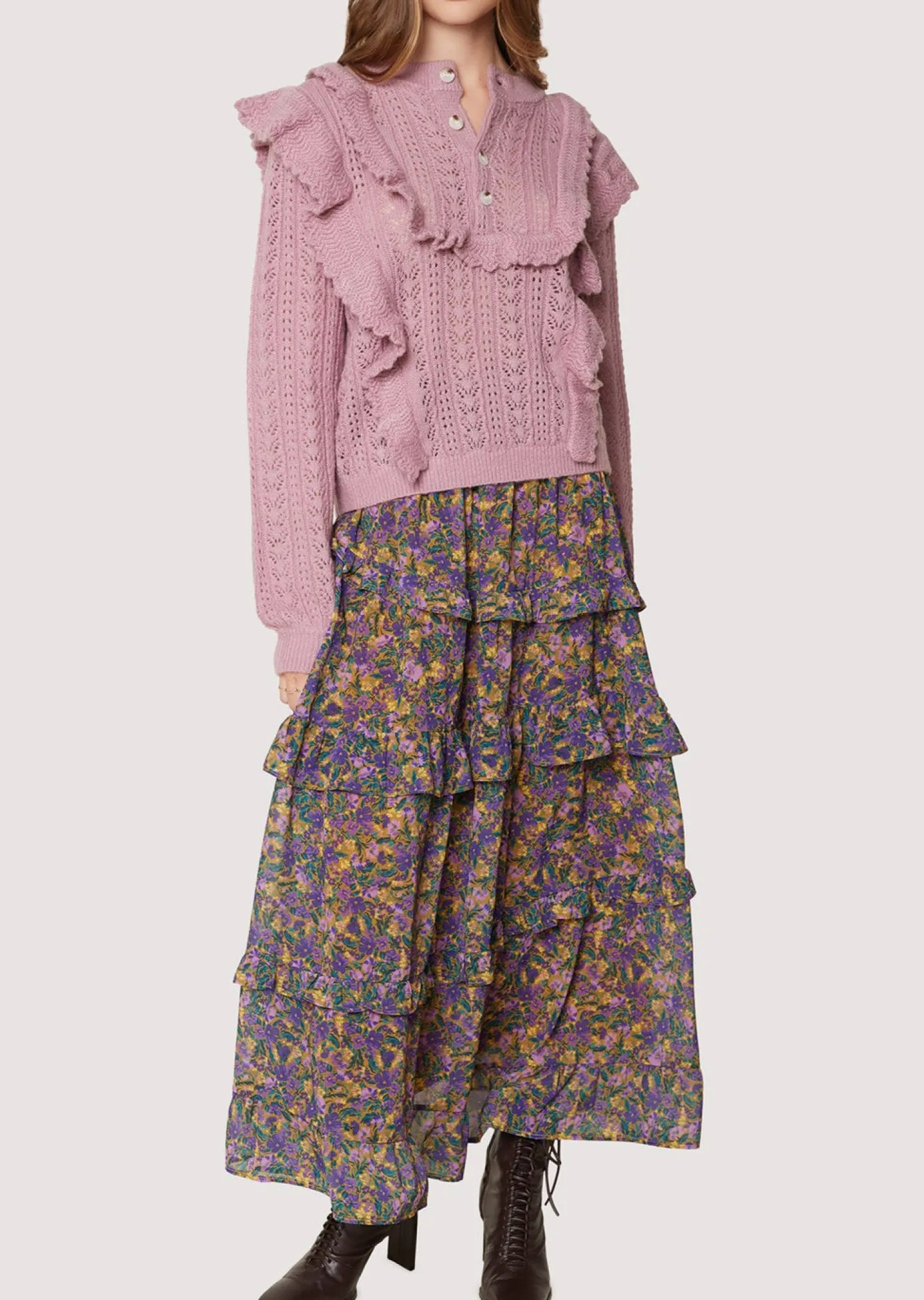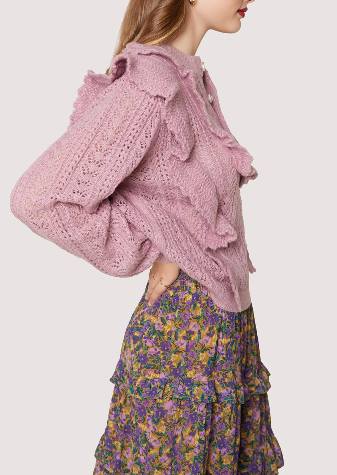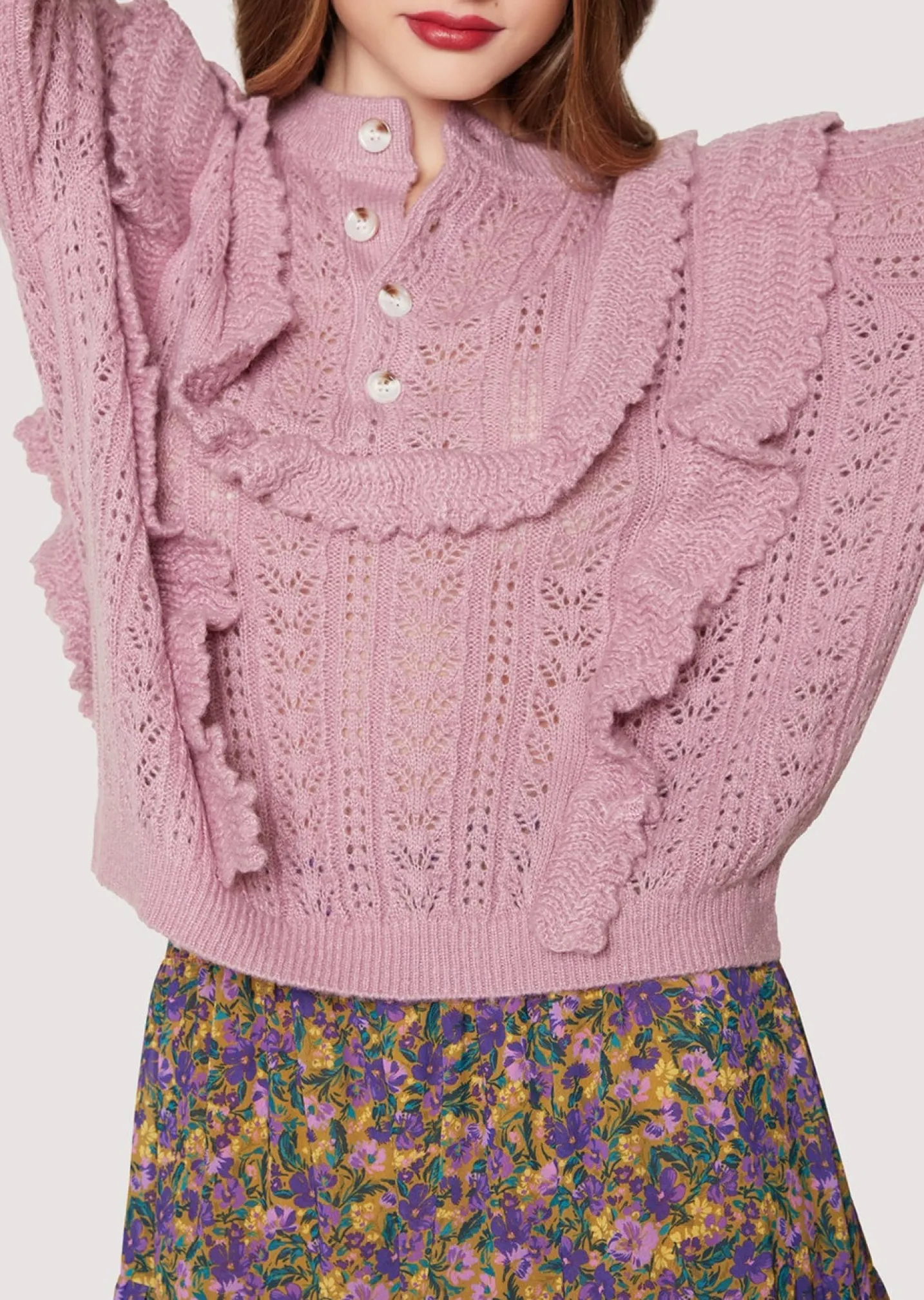 Lost + Wander Sweaters*Maddy Ruffle Polo Top DUSTY-MAUVE