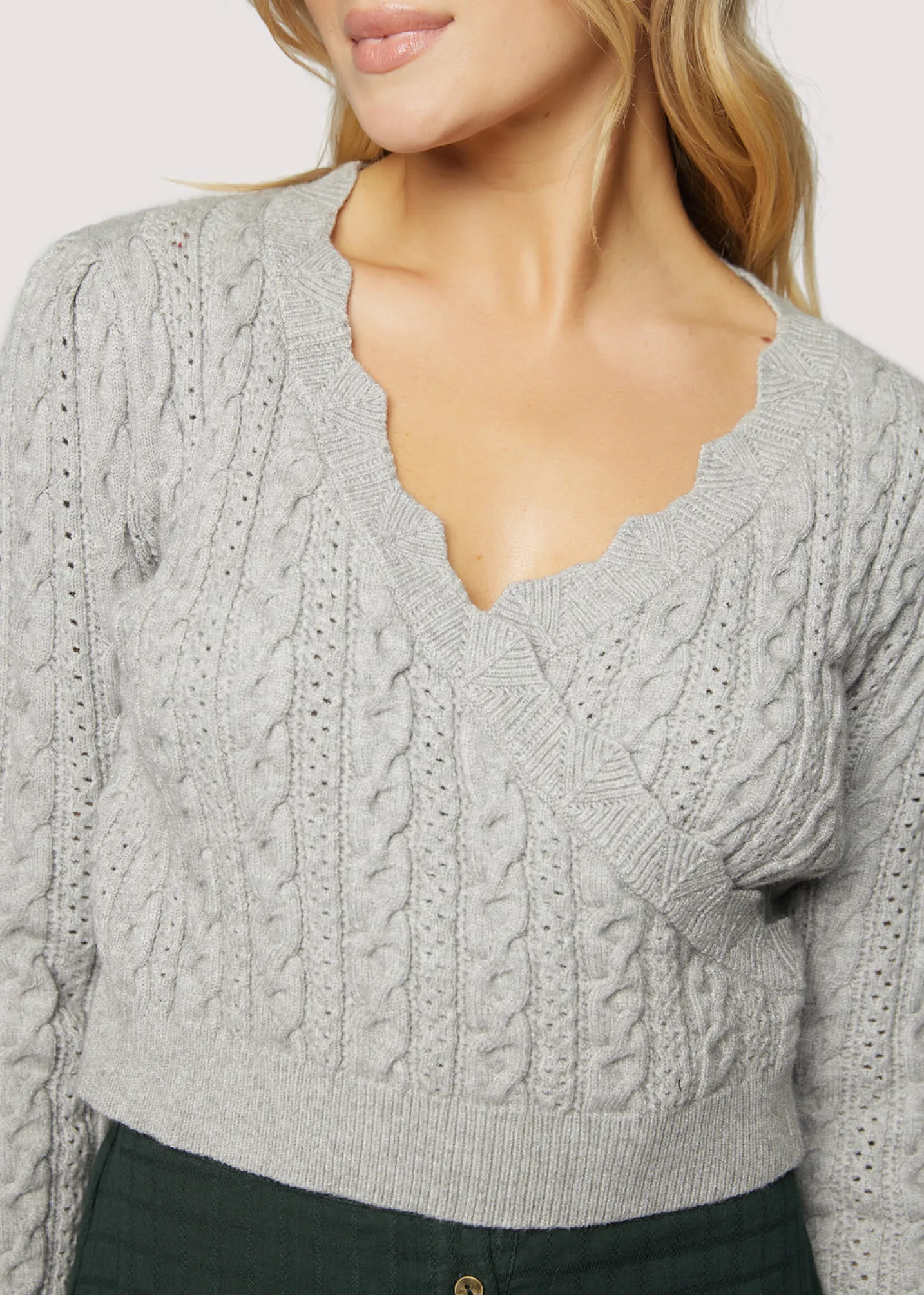 You’ll switch flawlessly into autumn fashion with the Olivia Wrap Top! This knit sweater features a wrap v neckline with scalloped edges and a ribbed waist, making it the perfect addition to your wardrobe.