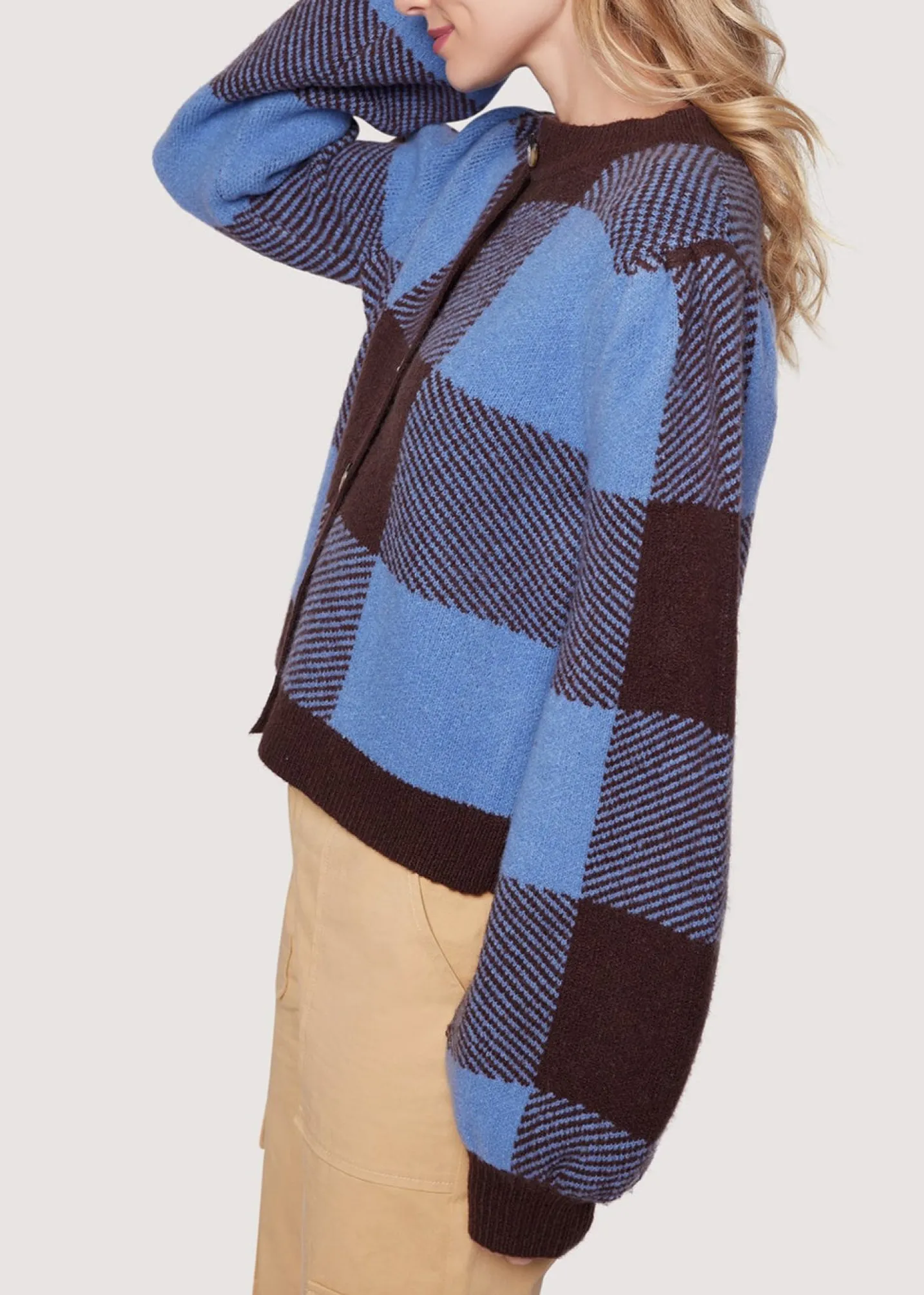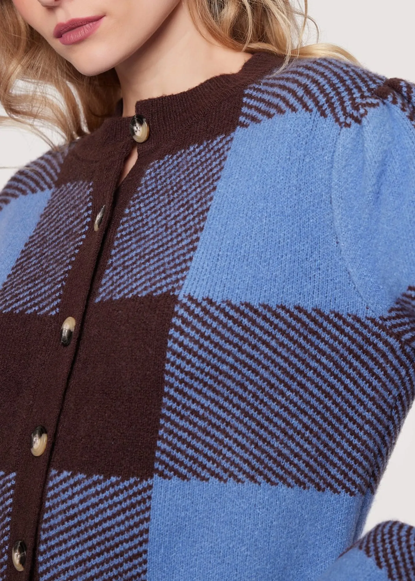 Stand out this fall in the Winter School Cardigan! Featuring a cozy chocolate brown and bright blue checkered print, this statement cardigan has contrasting buttons and cuffed long sleeves, making it a great addition to your wardrobe for breezier weather. Stay cozy and stylish in this layerable cropped item all season long.